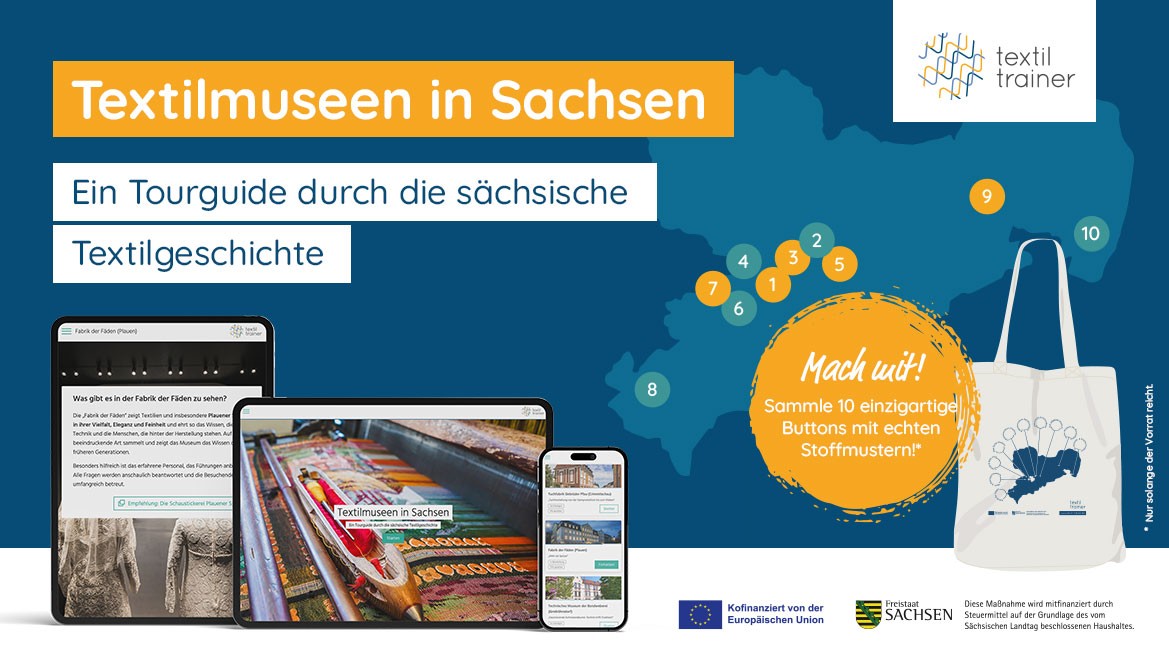 Ein zentraler Bestandteil dieser Industrie ist ihre traditionsreiche Geschichte, die tief in Sachsen verwurzelt ist. Im Kulturhauptstadtjahr Chemnitz 2025 erscheint der neue Onlinekurs „Sächsische Textilmuseen“ und lädt Interessierte zu einer digitalen Reise in die Welt der historischen Textilproduktion der Region ein. Vorgestellt werden zehn ausgewählte Museen, die Einblicke in Spitzenherstellung, Strickerei und Malimo, Webereigeschichte und vollstufige Wolltuchherstellung, Textilveredelung, Seidenwebkunst, Strumpfproduktion, Technische Textilien und den Textilmaschinenbau geben.